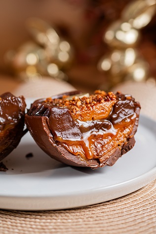 Ovo de colher Caramelo salgado com castanha caramelizada e chocolate meio amargo