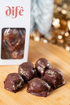 Pedaços de chocotone com brigadeiro gourmet banhado no chocolate nobre.